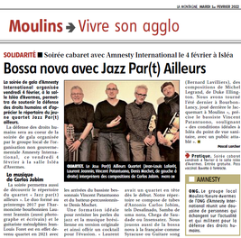 Retour de Denis MOCHET à la batterie avec le "Jazz Par(t) Ailleurs Quartet" le vendredi 4 février dernier pour Amnesty International...